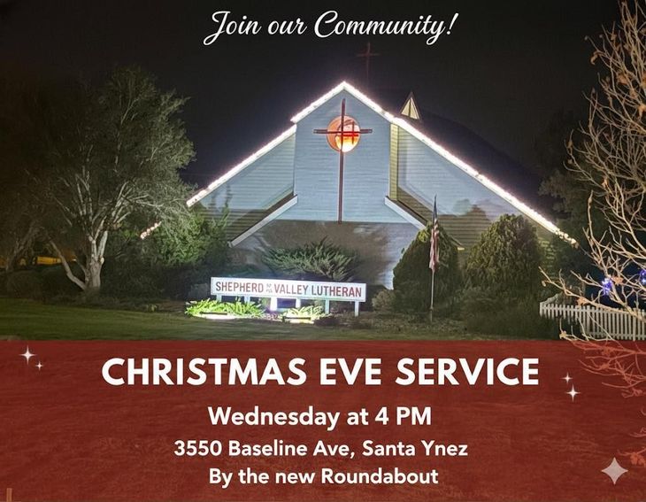 Location: Shepherd of the Valley Lutheran Church, 3550 Baseline Ave, Santa Ynez (right next to the new roundabout! For those coming from the south on the highway heading north, you can now easily access the church by exiting onto Baseline to the east.)